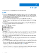 언어 지원 ○ EN - 영어 ○ JA - 일본어 ○ ES - 스페인어 ○ KO - 한국어 ○ FR - 프랑스어 ○ PT-BR - 포르투갈어, 브라질 ○ IT - 이탈리아어 ○ PT-PT - 포르투갈어, 포르투갈(이베리아) ○ DE - 독일어 SED Management ● IPv6는 지원되지 않습니다. ● 정책을 적용한 다음 실행 준비를 마친 후에 컴퓨터를 종료하고 재시작할 준비를 하십시오. ● SED(Self-Encrypting Drive)가 장착된 컴퓨터에는 HCA 카드를 사용할 수 없습니다. HCA의 프로비저닝을 방지하는 비호환성이 있 습니다. Dell은 SED(Self-Encrypting Drive)가 설치되어 HCA 모듈까지 지원하는 컴퓨터는 판매하지 않습니다. 이 지원되지 않는 구 성은 애프터마켓 구성입니다.