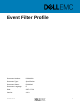 1. Scope The Dell Event Filter Profile provides the management capabilities to view the event filters and set actions and notifications for the events. 2. Normative References The following referenced documents are indispensable for the application of this document. For dated references, only the edition cited applies. For undated references, the latest edition of the referenced document (including any amendments) applies. • DMTF DSP1033, Profile Registration Profile 1.0.