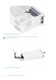 3. Tilt at an angle and insert the PSU cage into the slots on the system then slide it towards the rear of the system until the