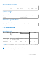 Table 1. Chassis dimension for the system Drives Xa Xb Ya Yb Yc Za Zb Zc 8 x 3.5-inch / 4 x 3.5inch 175 mm (6.88 inches) N/A 369.5 mm (14.54 inches) 382.5 mm (15.05 inches) N/A With bezel: 560.5 mm 19 mm (22.06 (0.74 inches) inches) 562.12 mm (22.13 inches) System weight Table 2. PowerEdge T350 system weight System configuration Maximum weight (with all drives/SSDs) 4 x 3.5-inch 19.54 kg (43.07 pound) 8 x 3.5-inch 25.34 kg (55.86 pound) Processor specifications Table 3.