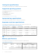 Cooling fan specifications The PowerEdge T350 system supports up to one cabled fan connected to the system board. Supported operating systems The PowerEdge T350 system supports the following operating systems: ● ● ● ● ● Canonical Ubuntu Server LTS Citrix Hypervisor Microsoft Windows Server with Hyper-V Red Hat Enterprise Linux SUSE Linux Enterprise Server For more information, go to www.dell.com/ossupport. System battery specifications The PowerEdge T350 system supports CR 2032 3.