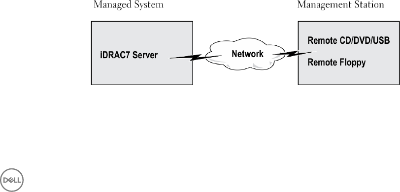 • Les périphériques virtuels apparaissent comme deux lecteurs sur le système géré sans que le support soit installé dans les