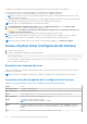 System Setup (Configuración del sistema) permite administrar el hardware del sistema y especificar las opciones de nivel de BIOS.