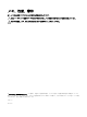 メモ、注意、警告 メモ: 製品を使いやすくするための重要な情報を説明しています。 注意: ハードウェアの損傷やデータの損失の可能性を示し、その問題を回避するための方法を説明しています。 警告: 物的損害、けが、または死亡の原因となる可能性があることを示しています。 © 2016 Dell Inc. 無断転載を禁じます。この製品は、米国および国際著作権法、ならびに米国および国際知的財産法で保護されています。 Dell、および Dell のロゴは、米国および / またはその他管轄区域における Dell Inc. の商標です。本書で使用されているその他すべての商標 および名称は、各社の商標である場合があります。 2016 - 10 Rev.