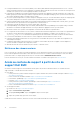 ● Récupérer la configuration et l’inventaire iDRAC actuels ● Obtenir et définir n'importe quel attribut iDRAC configurable ● Gestion des comptes d'utilisateurs iDRAC Configuration RAID La fonction de configuration de RAID sert à gérer les propriétés et les capacités du stockage RAID. Celui-ci est modélisé en utilisant une collection d'attributs et il existe des collections pour les enceintes, les adaptateurs de stockage, les disques logiques, les lecteurs de disques physiques et les périphériques PCleSSD.