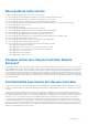 Applications utilisant les Lifecycle Controller-Remote Services Les applications suivantes utilisent Lifecycle Controller-Remote Services ● Dell Compellent | Fluid Data Network Storage Solution — compellent.com ● Dell Lifecycle Controller Integration v2.0 pour System Center Configuration Manager — dell.com/support/drivers/us/en/555/ DriverDetails/DriverFileFormats?DriverId=Y6J43 ● OpenManage Essentials - Systems Management — en.community.dell.com/techcenter/systems-management/w/wiki/ 1989.