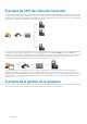 Vous pouvez effectuer les opérations suivantes : • • • Récupérer la configuration et l’inventaire iDRAC actuels Obtenir et définir n'importe quel attribut iDRAC configurable Gestion des comptes d'utilisateurs iDRAC Configuration RAID La fonction de configuration RAID permet de gérer les propriétés et fonctionnalités du stockage RAID.