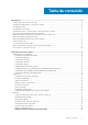 Notas, precauciones y advertencias NOTA: Una NOTA indica información importante que le ayuda a hacer un mejor uso de su producto. PRECAUCIÓN: Una ADVERTENCIA indica un potencial daño al hardware o pérdida de datos y le informa cómo evitar el problema. AVISO: Una señal de PRECAUCIÓN indica la posibilidad de sufrir daño a la propiedad, heridas personales o la muerte. © 2018 - 2019 Dell Inc. o sus filiales. Todos los derechos reservados.