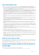 • • • • • • • Para consultar documentos de Dell EMC OpenManage, visite www.dell.com/openmanagemanuals Para consultar documentos de Dell EMC Remote Enterprise Systems Management, visite www.dell.com/esmmanuals Para consultar documentos de iDRAC y Dell Lifecycle Controller, visite www.dell.com/idracmanuals Para consultar documentos de Dell EMC OpenManage Connections Enterprise Systems Management, visite www.dell.com/ esmmanuals Para consultar documentos de Dell EMC Serviceability Tools, visite www.dell.