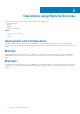 2 Operations using Remote Services Using Lifecycle Controller-Remote Services, you can perform the following operations: • • • • Deploy and Configure Monitor Maintain Create and schedule jobs Topics: • • • Deployment and configuration Monitor Maintain Deployment and configuration Using various Lifecycle Controller-Remote Services' capabilities, you can perform different configurations on a system throughout its Lifecycle.