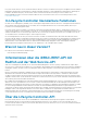 3 Erste Schritte mit zusätzlicher API und Links Führen Sie folgende Schritte durch, um mit der Nutzung der Lifecycle Controller-API zu beginnen: 1. 2. 3. 4. Identifizieren Sie die Funktion oder den erforderlichen Verwaltungsvorgang. Bestimmen Sie, wie die API für die erforderliche Verwaltungsaktivität aufgebaut wird. Verwenden Sie einen Client, um auf die API zuzugreifen. Verwenden Sie bei der Interaktion mit der API für den Client die optimalen Verfahrensworkflows, um die Aktivität abzuschließen.