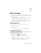 1 Before You Begin This manual provides procedures for removing and installing components in your computer. Unless otherwise noted, each procedure assumes that the following conditions exist: • You have performed the steps in "Turning Off Your Computer" on page 9 and "Before Working Inside Your Computer" on page 10. • You have read the safety information that shipped with your computer.