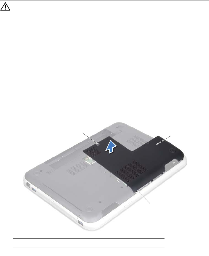 1 Uvoľnite skrutku so zapustenou hlavou, ktorá upevňuje kryt základne k základni