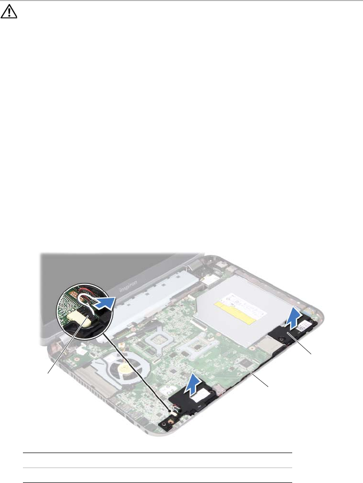 1 Odpojte kábel reproduktorov od konektora na systémovej doske.