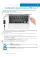 1 Configuration de votre Inspiron 3195 2-en-1 REMARQUE : En fonction de la configuration que vous avez commandée, les images présentées dans ce document peuvent être différentes de votre ordinateur. 1. Branchez l’adaptateur d’alimentation et appuyez sur le bouton d’alimentation. REMARQUE : Pour préserver la batterie, celle-ci peut passer en mode d’économie d’énergie. Branchez l’adaptateur secteur et appuyez sur le bouton d’alimentation pour allumer l’ordinateur. 2. Terminer l'installation de Windows.