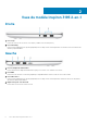 5 Obtenir de l’aide et contacter Dell Ressources d’aide en libre-service Vous pouvez obtenir des informations et de l’aide sur les produits et services Dell en utilisant ces ressources en libre-service : Tableau 23. Ressources d’aide en libre-service Ressources d’aide en libre-service Emplacement de la ressource Informations sur les produits et services Dell www.dell.com Conseils Application Aide et support Dell REMARQUE : La disponibilité peut varier selon les pays.