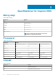 Tabel 4. Chipsæt(fortsat) Beskrivelse Værdier DRAM-busbredde 64-bit Flash EPROM 16 MB + 8 MB PCIe-bus Op til PCIe Gen3.0 Ekstern busfrekvens Ikke understøttet Operativsystem • • • Ubuntu Windows 10 Home (64-bit) Windows 10 Professional (64-bit) Hukommelse Tabel 5. Hukommelsesspecifikationer Beskrivelse Værdier Slots Op til to SoDIMM-slots BEMÆRK: Antallet af tilgængelige hukommelsesslots kan variere i forhold til regionen. Type DDR4 Hastighed 2.666 MHz/3.