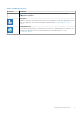 5 Rekvirere hjælp og kontakte Dell Selvhjælpsressourcer Du kan få oplysninger og hjælp til Dell-produkter og servicer ved at bruge disse selvhjælpsressourcer: Tabel 27. Selvhjælpsressourcer Selvhjælpsressourcer Ressourceplacering Information om Dells produkter og services www.dell.com Mit Dell Tips Kontakt supporten I Windows-søgning, skriv Contact Support, og tryk på Enter. Online-hjælp til operativsystem www.dell.com/support/windows www.dell.