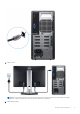 3. Podłącz monitor. UWAGA: Jeśli z komputerem zamówiono autonomiczną kartę graficzną, złącza HDMI i VGA z tyłu komputera mogą być zasłonięte. Podłącz wyświetlacz do autonomicznej karty graficznej w komputerze. 4. Podłącz kabel zasilający.