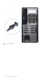 Panel tylny 1. Złącze wyjścia liniowego do podłączania głośników 2. Port HDMI 1.4b Umożliwia podłączenie telewizora lub innego urządzenia wyposażonego w wejście HDMI. Zapewnia wyjście wideo i audio. UWAGA: Ten port jest niedostępny w przypadku komputerów z procesorami Intel Core i5-11400F i Intel Core i7-11700F jedenastej generacji. 3. Gniazdo VGA Służy do podłączania zewnętrznego monitora lub projektora.