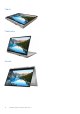 Spis treści Rodzdział 1: Konfigurowanie komputera Inspiron 5406 2-in-1.............................................................. 4 Rodzdział 2: Widoki komputera Inspiron 5406 2-in-1.......................................................................... 6 Prawa strona.......................................................................................................................................................................... 6 W lewo...........................................................