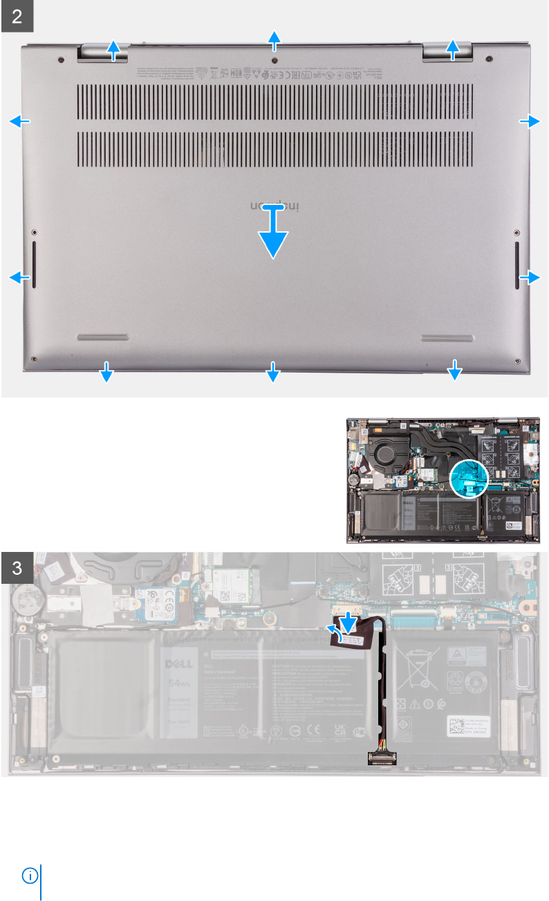 1. Remove the four screws (M2x4) that secure the base cover to the palm-rest and keyboard assembly.