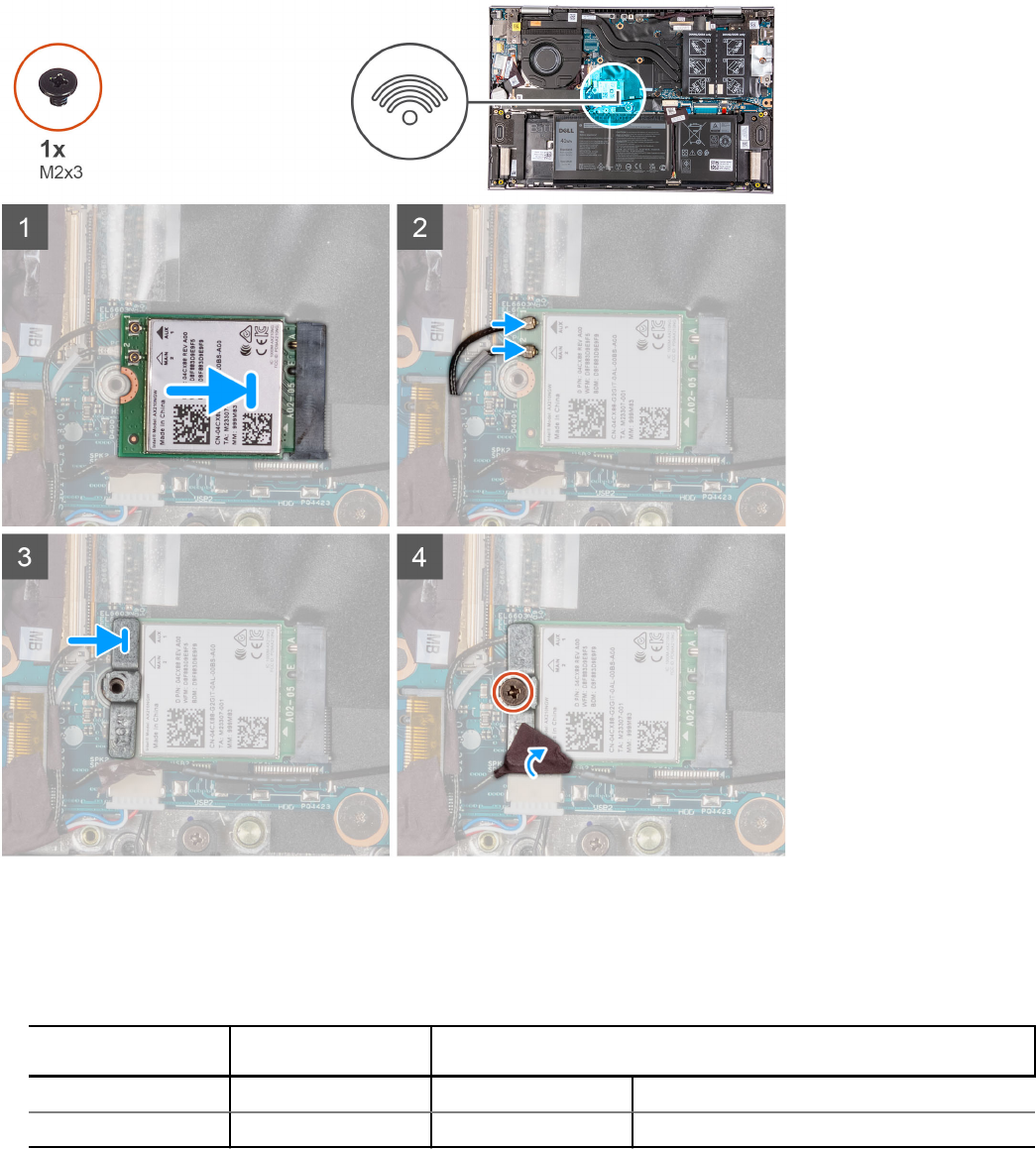 The following image indicates the location of the wireless card and provides a visual representation of the installation procedure.
