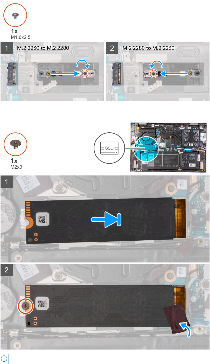 NOTE: Perform step 1 to step 4 if you are replacing the M.2 2230 solid-state drive with an M.2 2280 solid-state drive.