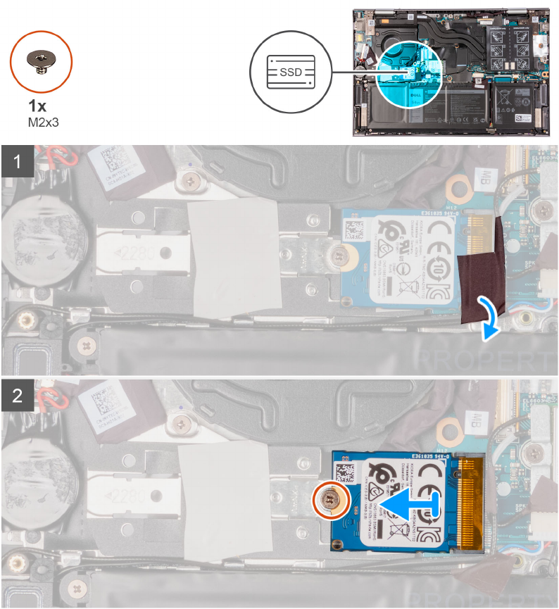 3. Remove the screw (M2x3) that secures the solid-state drive to the solid-state drive bracket.