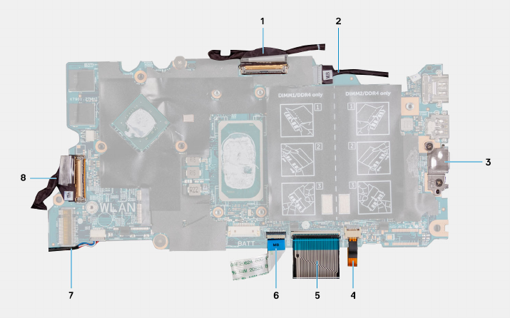 5. Keyboard cable 6. Touchpad cable
