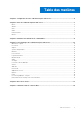 Remarques, précautions et avertissements REMARQUE : Une REMARQUE indique des informations importantes qui peuvent vous aider à mieux utiliser votre produit. PRÉCAUTION : ATTENTION vous avertit d’un risque de dommage matériel ou de perte de données et vous indique comment éviter le problème. AVERTISSEMENT : un AVERTISSEMENT signale un risque d’endommagement du matériel, de blessure corporelle, voire de décès. © 2021 Dell Inc. ou ses filiales. Tous droits réservés.