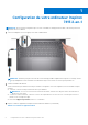 1 Configuration de votre ordinateur Inspiron 7415 2-en-1 REMARQUE : En fonction de la configuration que vous avez commandée, les images présentées dans ce document peuvent être différentes de votre ordinateur. 1. Connectez l’adaptateur secteur et appuyez sur le bouton d’alimentation. REMARQUE : La batterie peut passer en mode d’économie d’énergie pendant l’expédition afin de préserver sa charge.