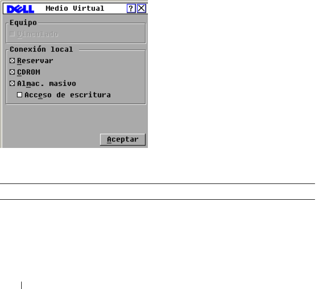 Tabla 5-1. Opciones de la función de medio virtual en la interfaz OSCAR