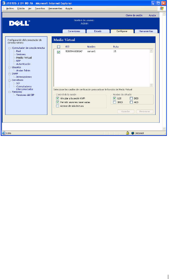 - Administración del conmutador de consola remota mediante la interfaz Web integrada