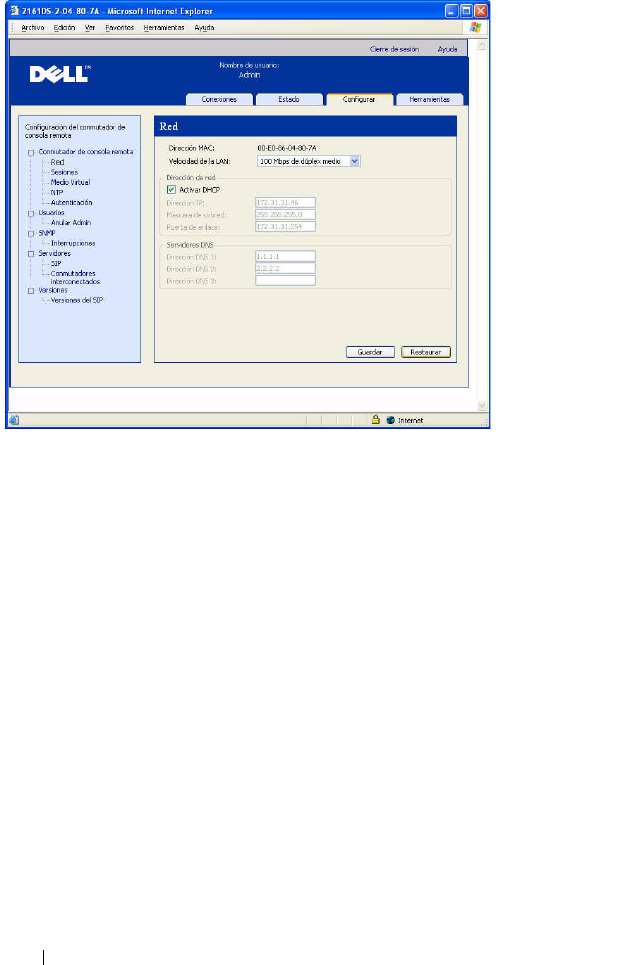 Figura 8-1. Interfaz Web integrada - Subcategoría Red