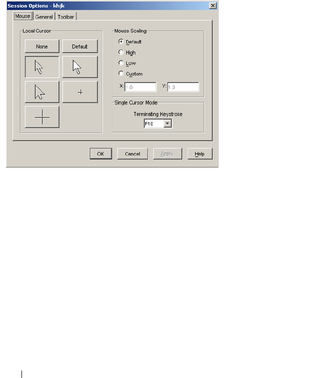 Рис. 4-8. Диалоговое окно параметров мыши в окне просмотра сеанса