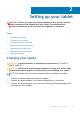 Restoring your operating system...................................... 20 Resetting your tablet.............................................. 21 Gestures...................................................................21 4 Keyboards and Pens................................................. 24 Latitude 11 Slim Keyboard............................................. 24 Connecting your tablet............................................ 24 Disconnecting your tablet.........................................