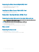 Installing battery 1 Insert the battery into the slot on the computer. 2 Connect the battery cable to the connector on the system board. 3 Replace the M 2 x 4L screws to secure the battery to the computer. 4 Install the: a b 5 base cover SD card Follow the procedure in After working inside your computer. PCIe Solid State Drive (SSD) Removing the NVMe SSD card 1 Follow the procedure in Before working inside your computer.