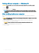 Turning off your computer — Windows 10 CAUTION: To avoid losing data, save and close all open files and exit all open programs before you turn off your computer. 1 Click or tap 2 Click or tap . and then click or tap Shut down. NOTE: Ensure that the computer and all attached devices are turned off. If your computer and attached devices did not automatically turn off when you shut down your operating system, press and hold the power button for about 6 seconds to turn them off.