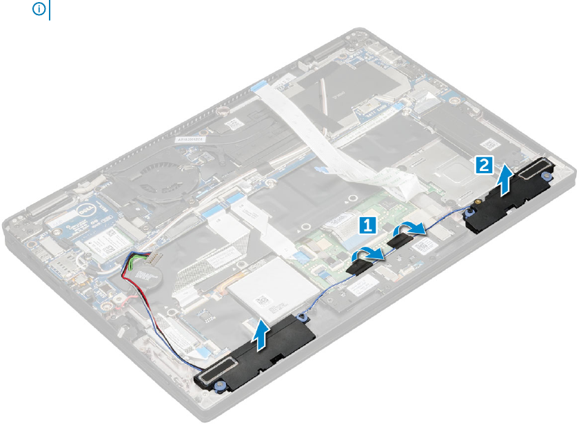 a Ridicaţi bateria rotundă ataşată la cablurile boxei [1].