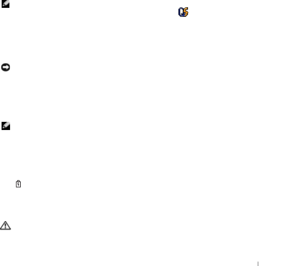 注意 : 若要避免資料遺失或損毀,請在收到電池電量不足警告之後立即儲存您的工作。 然後將電腦與電
