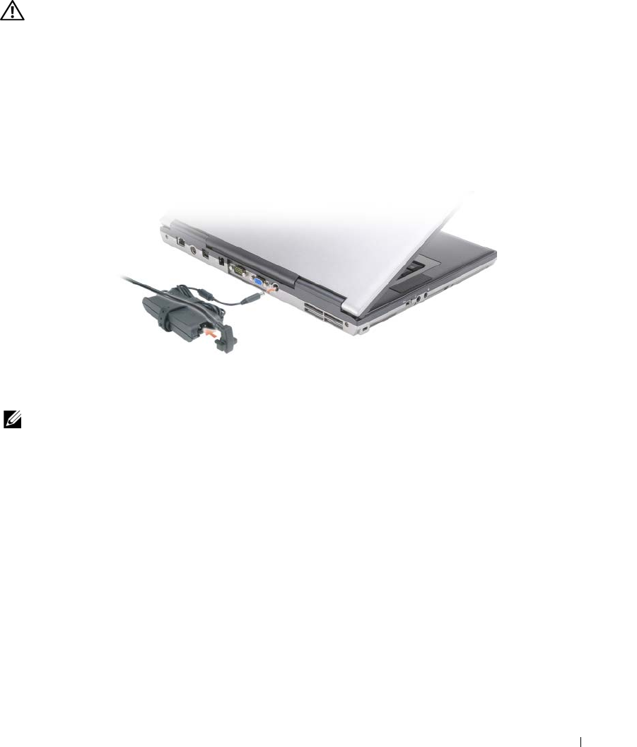 Branchez l'adaptateur secteur sur le connecteur de l'ordinateur et sur la prise électrique.