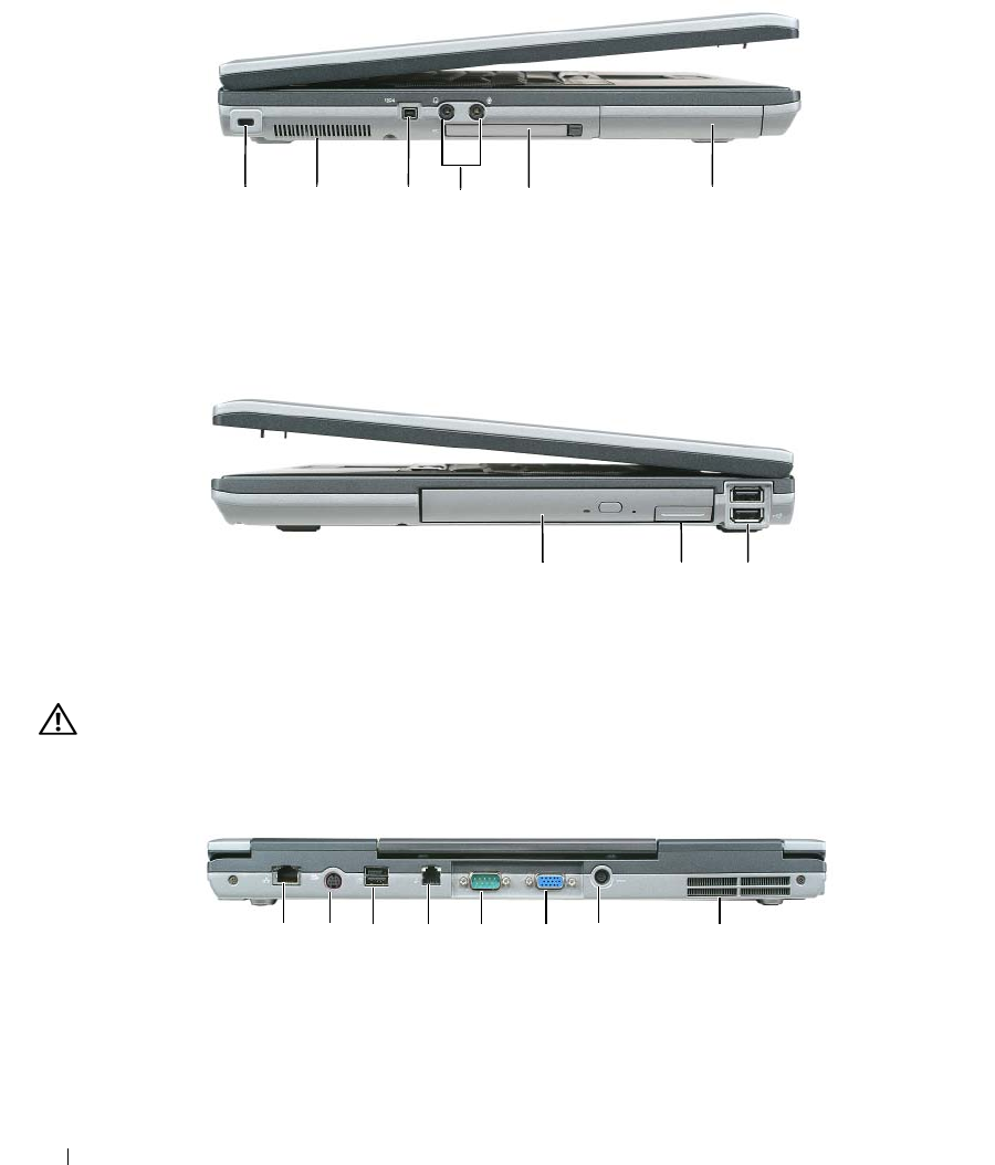 4 złącza audio (2) 5 gniazdo kart PC 6 napęd dysku twardego