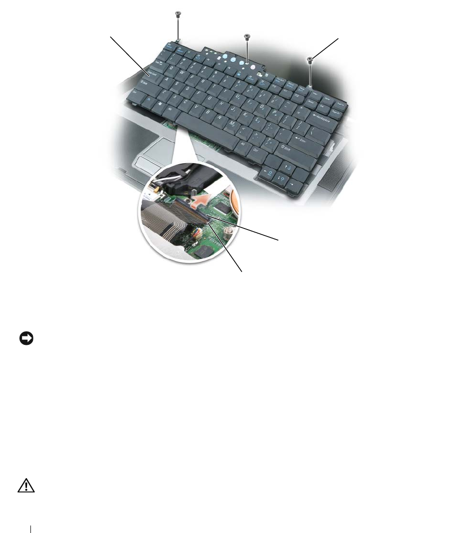 HINWEIS: Um ein Zerkratzen der Handballenstütze beim Einsetzen der Tastatur zu vermeiden, hängen Sie