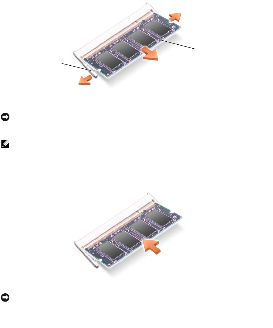 KENNISGEVING: Plaats de geheugenmodules met een hoek van 45 graden om schade aan de connector te