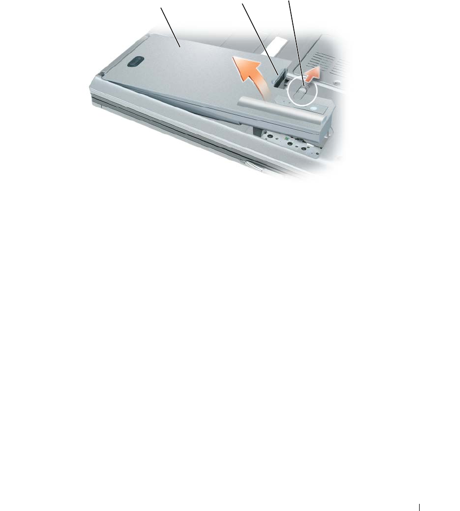 Slide the battery-bay latch release on the bottom of the computer until the release clicks.