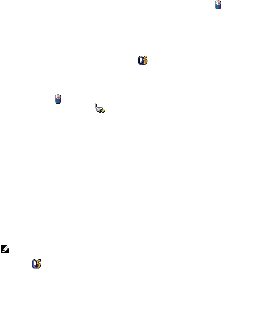 Dell QuickSet 가 설치된 경우 QuickSet 전지 측정기를 표시하려면 <Fn><F3> 을 누르십시오 . 전