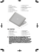 Angka 4. Tampak Belakang 1. 2. 3. 4. 5. 6. konektor jaringan konektor USB 2.0 konektor modem (opsional) konektor daya slot kabel sekuriti ventilasi pendinginan 7. 8. 9. 10. 11. 12. konektor IEEE 1394a konektor HDMI konektor eSATA/USB 2.0 konektor USB 2.0 slot kartu Secure Digital (SD) slot ExpressCard PERINGATAN: Jangan sampai ada benda yang menyumbat, masuk ke dalam ventilasi udara atau ada debu yang menumpuk dalam ventilasi udara.