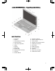 9. 10. 11. 12. 13. 14. 15. 16. mikrofon tombol kontrol volume tombol pembuka drive optis drive optis konektor USB 2.0 konektor headphone pembaca sidik jari (opsional) panel sentuh 17. 18. 19. 20. 21. 22. 23. tombol panel sentuh (2) switch nirkabel indikator status daya dan baterai tombol stik trek (3) stik trek (opsional) keyboard lampu status perangkat 7. 8. 9. 10. 11. 12. konektor IEEE 1394 konektor HDMI konektor e-SATA/USB 2.0 konektor USB 2.