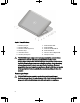 9. 10. 11. 12. 13. 14. 15. 16. mikrofon tombol kontrol volume tombol pembuka drive optis drive optis konektor USB 2.0 konektor headphone pembaca sidik jari (opsional) panel sentuh 17. 18. 19. 20. 21. 22. 23. tombol panel sentuh (2) switch nirkabel indikator status daya dan baterai tombol stik trek (3) stik trek (opsional) keyboard lampu status perangkat 7. 8. 9. 10. 11. 12. konektor IEEE 1394 konektor HDMI konektor e-SATA/USB 2.0 konektor USB 2.